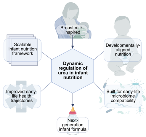 Synchronizing infant nutrition with early-life biology. Rutgers researchers propose replacing static infant nutrition with formulations inspired by human breast milk. Regulated urea delivery aligned with infant developmental needs and microbiome sustenance enables next-generation nutrition for infants.